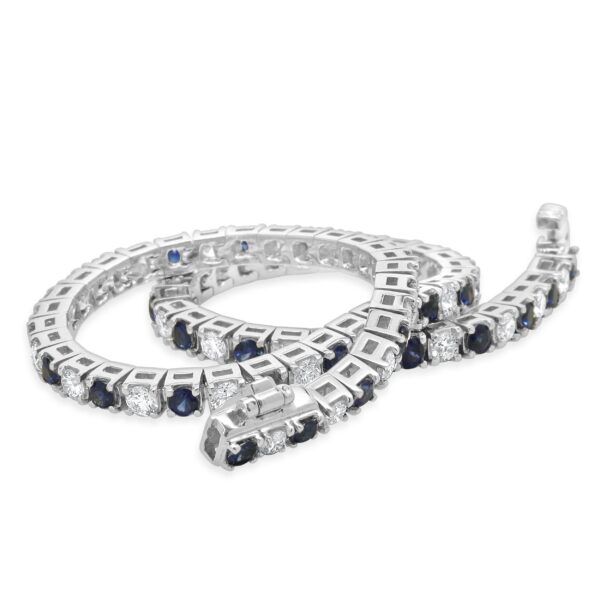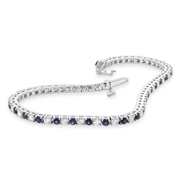 14 Karat White Gold Alternating Sapphire and Diamond Inline Bracelet
