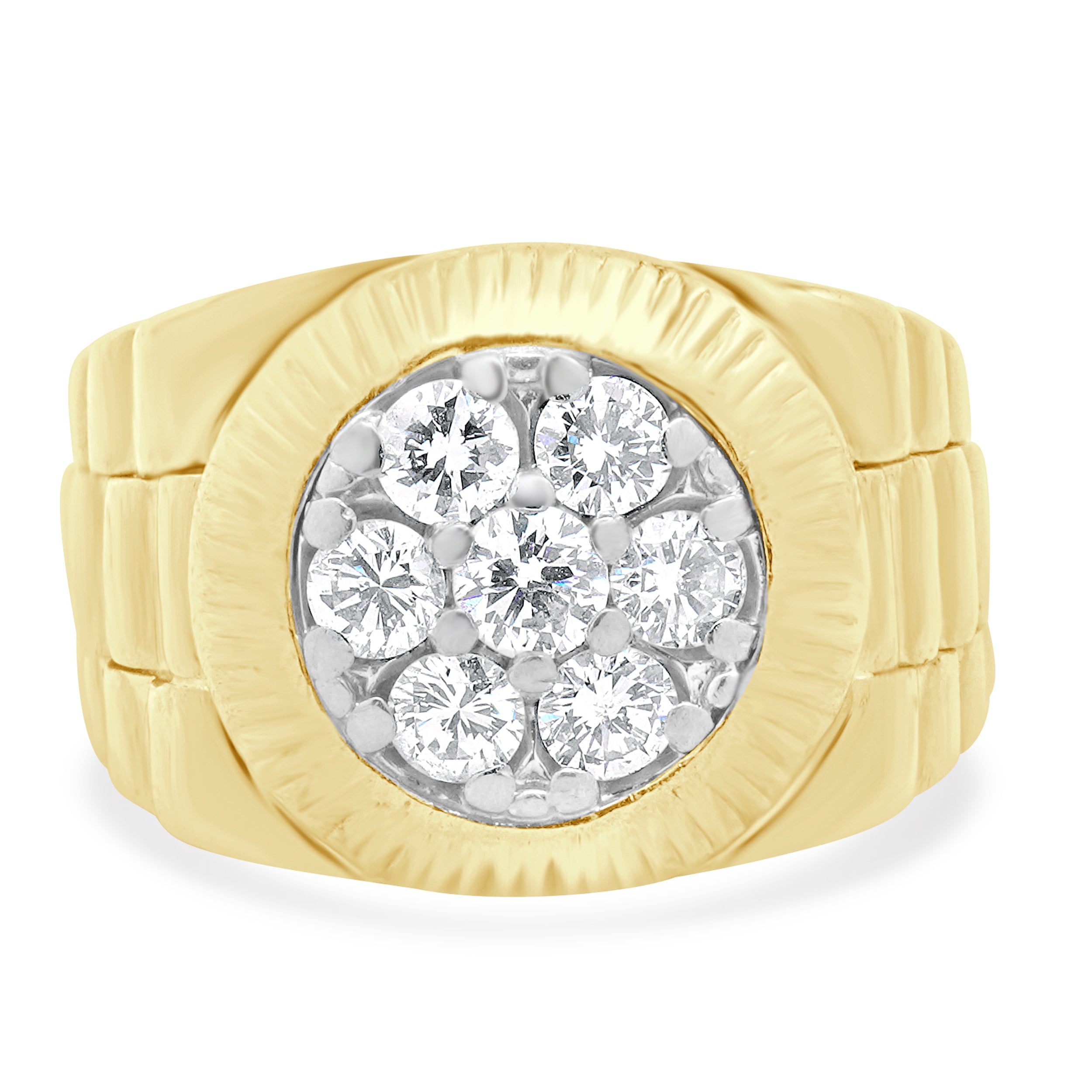 Elevate your style with this exquisite 18 Karat Yellow Gold Diamond Cluster Ring, a testament to timeless elegance and craftsmanship. The centerpiece of this extraordinary piece is a luminous cluster of seven round diamonds, meticulously arranged to deliver a breathtaking, uniform sparkle across the finger. The diamonds, totaling 1 carat in weight and boasting a clarity of VS2-SI1 with a radiant G, H color, are expertly set to maximize their surface brilliance.