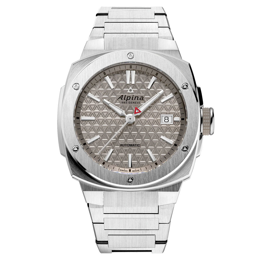 Experience the perfect blend of rugged elegance and precision engineering with the Alpina Alpiner Extreme Automatic. Crafted with a robust 39mm stainless steel case and enhanced by a fixed stainless steel bezel, this watch exudes strength and sophistication. The captivating beige dial, adorned with a unique triangle pattern and luminous index markers, ensures both style and legibility. Powered by a Swiss automatic movement, it features hours, minutes, seconds, and date functions, all protected by a durable sapphire crystal. The stainless steel bracelet, secured with a deployment clasp, complements the watch’s overall resilience. An exhibition caseback reveals the artistry of its movement, while its 200-meter water resistance fortifies it for any adventure. This unisex timepiece is a sublime union of functionality and Swiss craftsmanship.