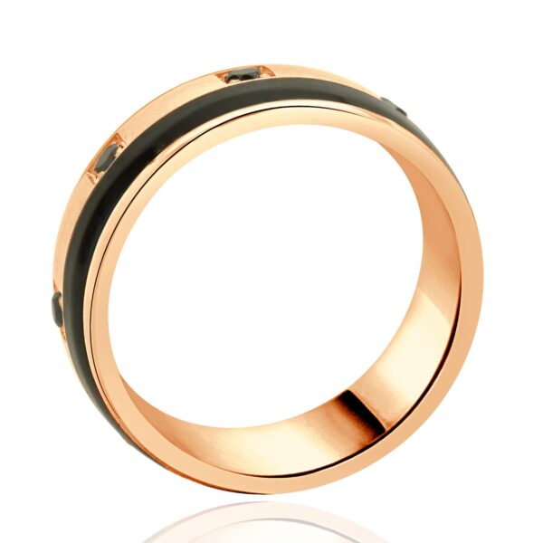 Bleu Royal 14 Karat Rose Gold Black Diamond and Carbon Striped Ring
