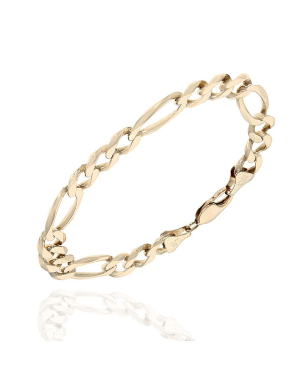 Crafted with precision and elegance, the Gentleman’s Figaro Link Chain Bracelet is a masterpiece of 14k yellow gold, offering a refined touch to any ensemble. Weighing 36.7 grams, this bracelet showcases the perfect harmony of strength and sophistication. The 9.75-inch length provides a comfortable fit, while the distinctive Figaro link design adds a dynamic visual appeal. Secured with a reliable lobster clasp, this bracelet epitomizes both style and durability. Featuring a hallmark of “14KT Made Italy,” it signifies exceptional Italian craftsmanship and quality. A statement piece in every regard, this bracelet is designed for the discerning gentleman who appreciates the finer things in life.