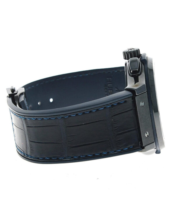 Discover the epitome of luxury and precision with the Hublot Classic Fusion Ceramic Blue Chronograph. This striking timepiece features an impressive 45mm case crafted from robust ceramic, offering a sleek, matte finish that ensures durability and style. The dial, a stunning satin-finished blue sunray adorned with index markers, exudes sophistication and clarity. Driven by an automatic movement, this watch promises both reliability and precision. The fixed black ceramic bezel, secured with titanium screws, adds a bold touch, while the sapphire crystal provides optimal protection. Complementing its modern aesthetics is the black leather and rubber strap, secured with a black deployment clasp, delivering comfort and a secure fit. Water-resistant up to 50 meters, this watch is as practical as it is elegant. Complete with original box and papers, the Hublot Classic Fusion offers both luxury and legacy in one extraordinary timepiece.