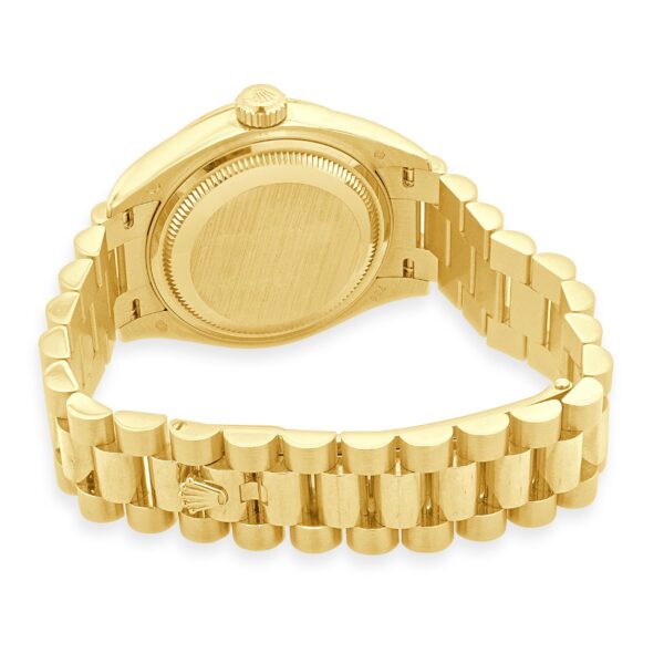 The iconic President bracelet, also in 18k yellow gold, features a hidden clasp for seamless sophistication. Water-resistant up to 100 meters, this watch embodies functionality and opulence, making it a perfect companion for any occasion. With its unparalleled craftsmanship and enduring beauty, the Rolex Datejust is not just a timepiece—it’s a statement.