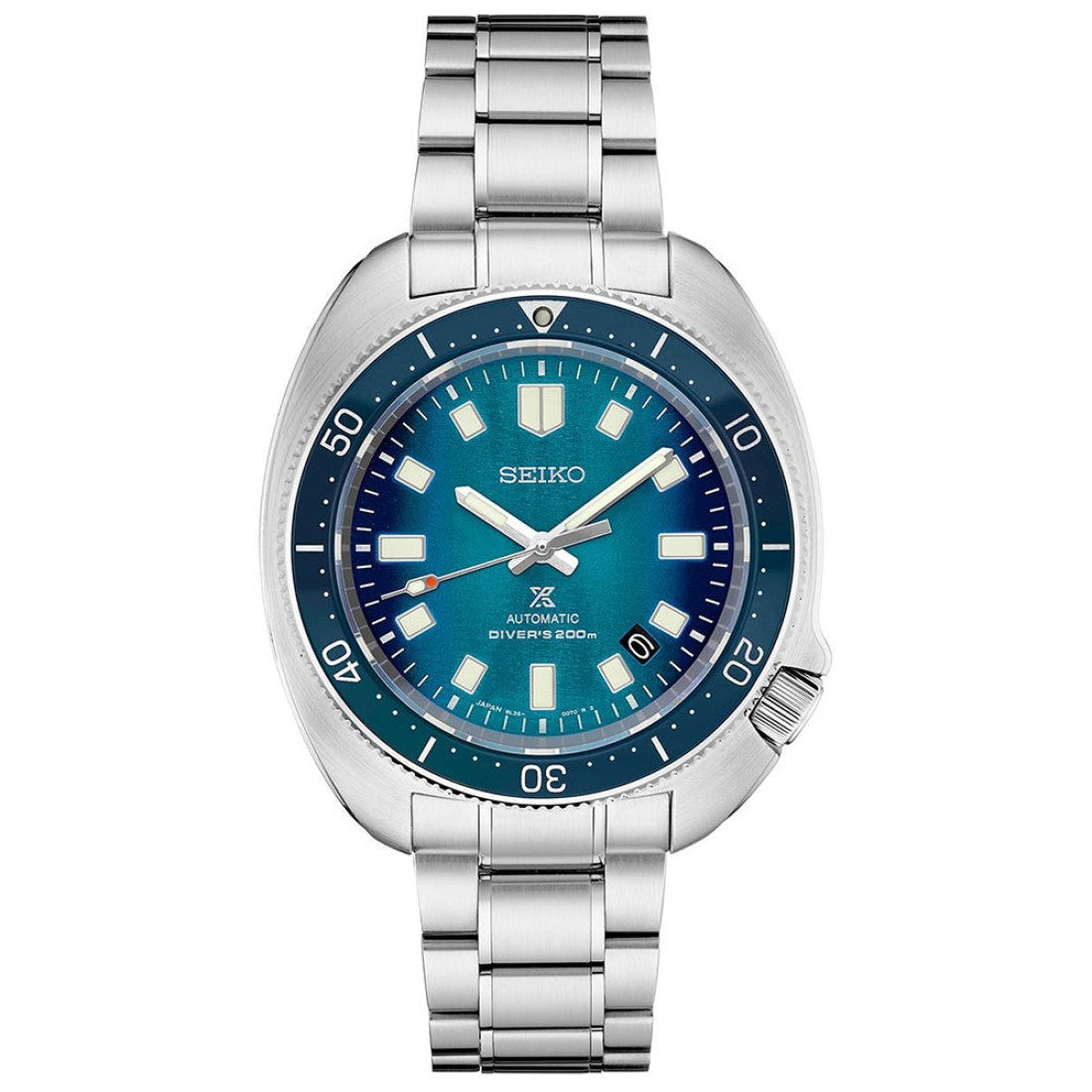 Discover the epitome of robust elegance with the Seiko Prospex 1970 Diver’s Modern Re-Interpretation SLA063. This men’s watch melds timeless design with contemporary craftsmanship, featuring a striking 44mm stainless steel case that exudes strength and sophistication. The captivating blue gradated pattern dial is complemented by luminous index markers, ensuring effortless readability even in the depths of the ocean, reinforced by its impressive 200-meter water resistance. Driven by a precise automatic movement, this timepiece combines innovation with heritage. The unidirectional rotating bezel with a blue insert adds a touch of functional style, perfectly matched by the stainless steel bracelet secured with a deployment clasp. Complete with a sapphire crystal for ultimate scratch resistance, the SLA063 stands as a testament to Seiko’s unwavering commitment to quality and detail.