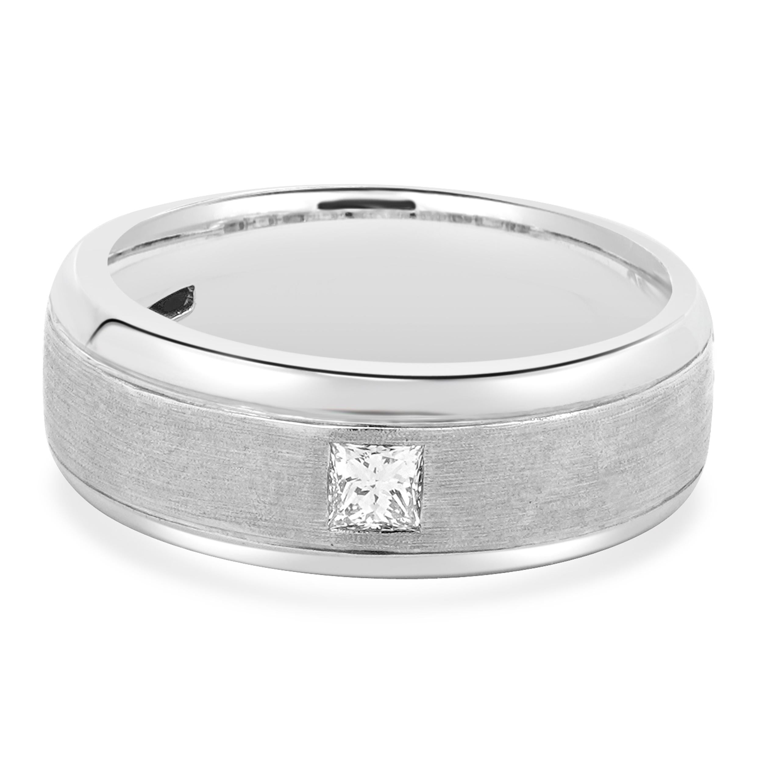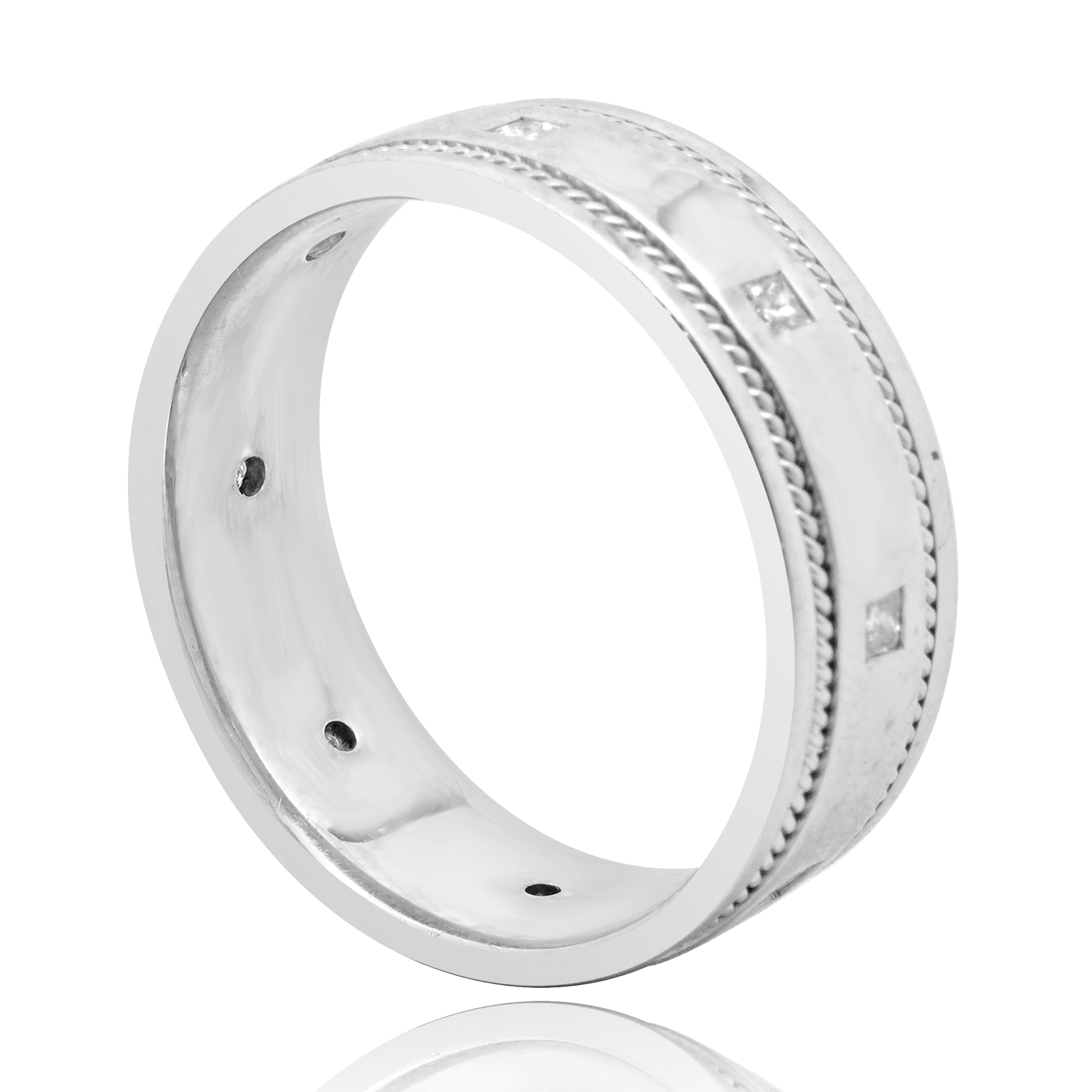 14 Karat White Gold 8mm Comfort Fit Princess Cut Diamond Wedding Band