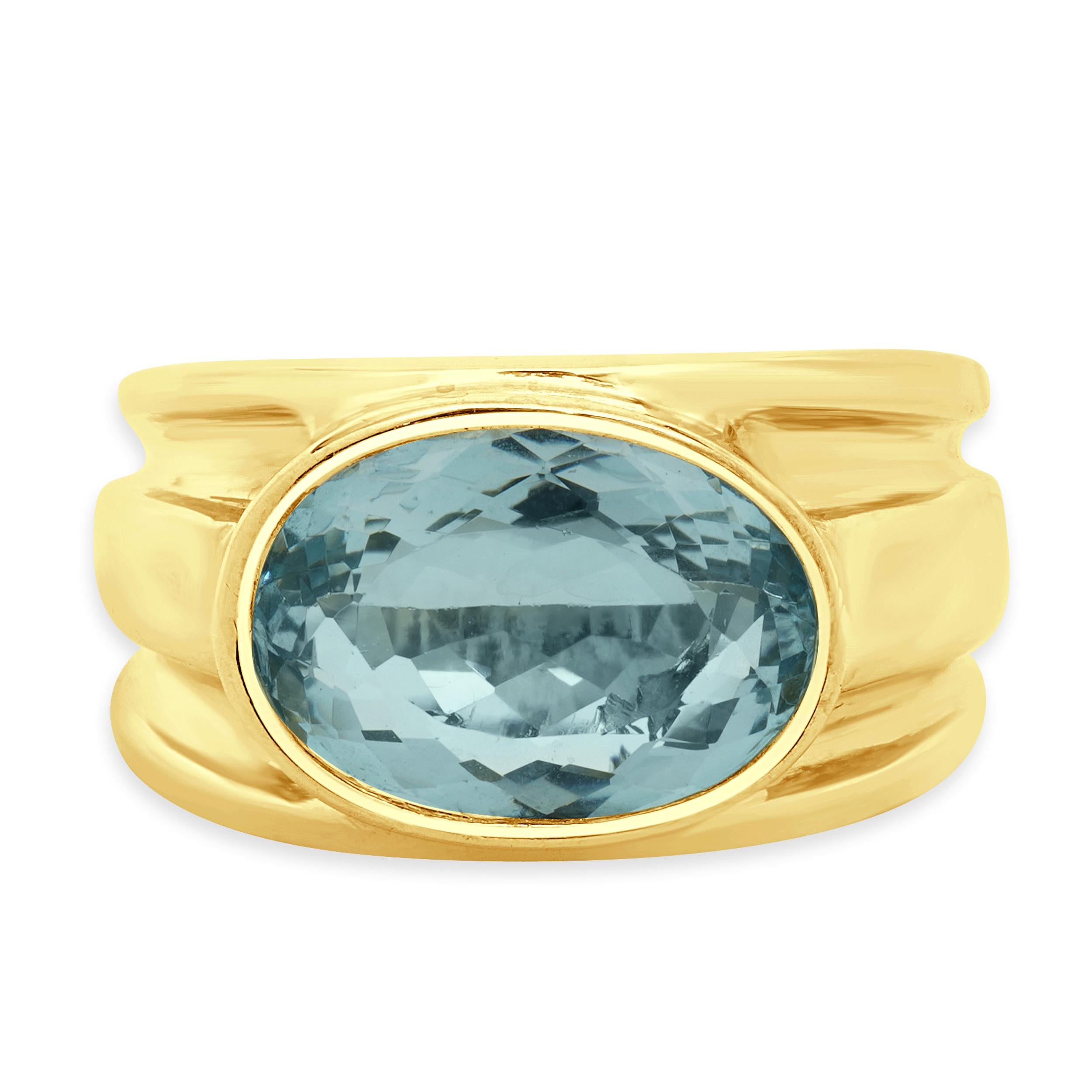 14 Karat Yellow Gold Bezel Set Aquamarine Ring