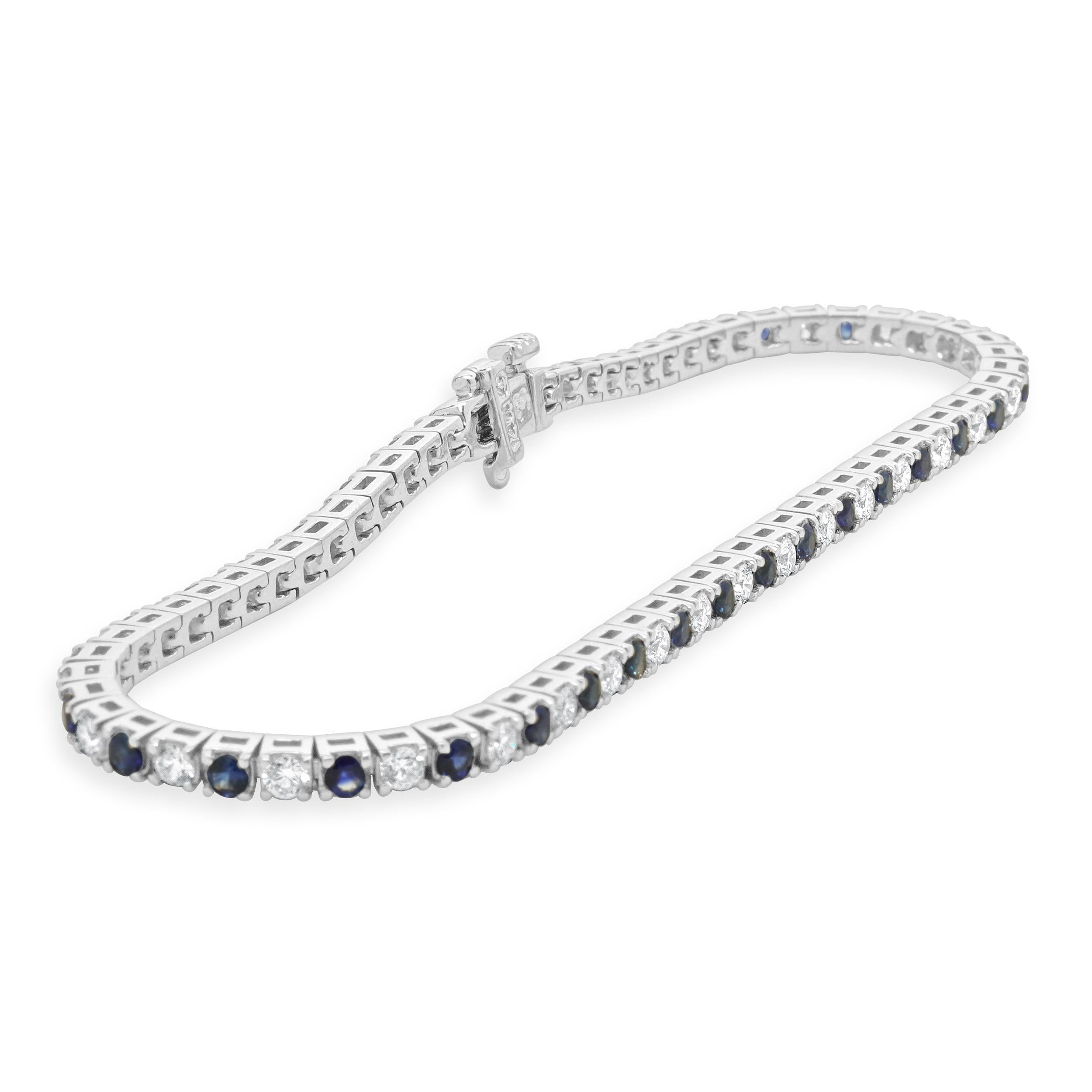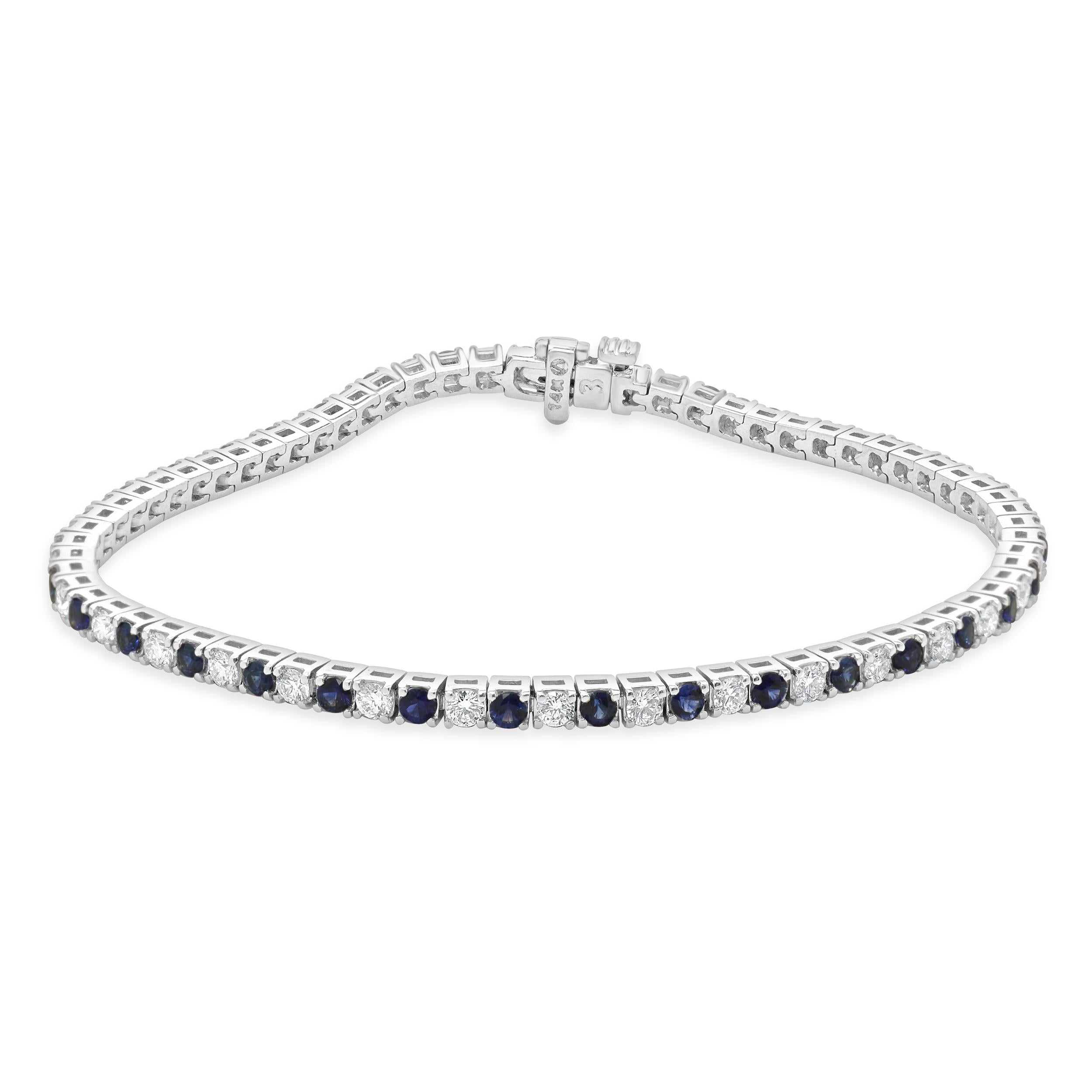 14 Karat White Gold Alternating Sapphire and Diamond Inline Bracelet