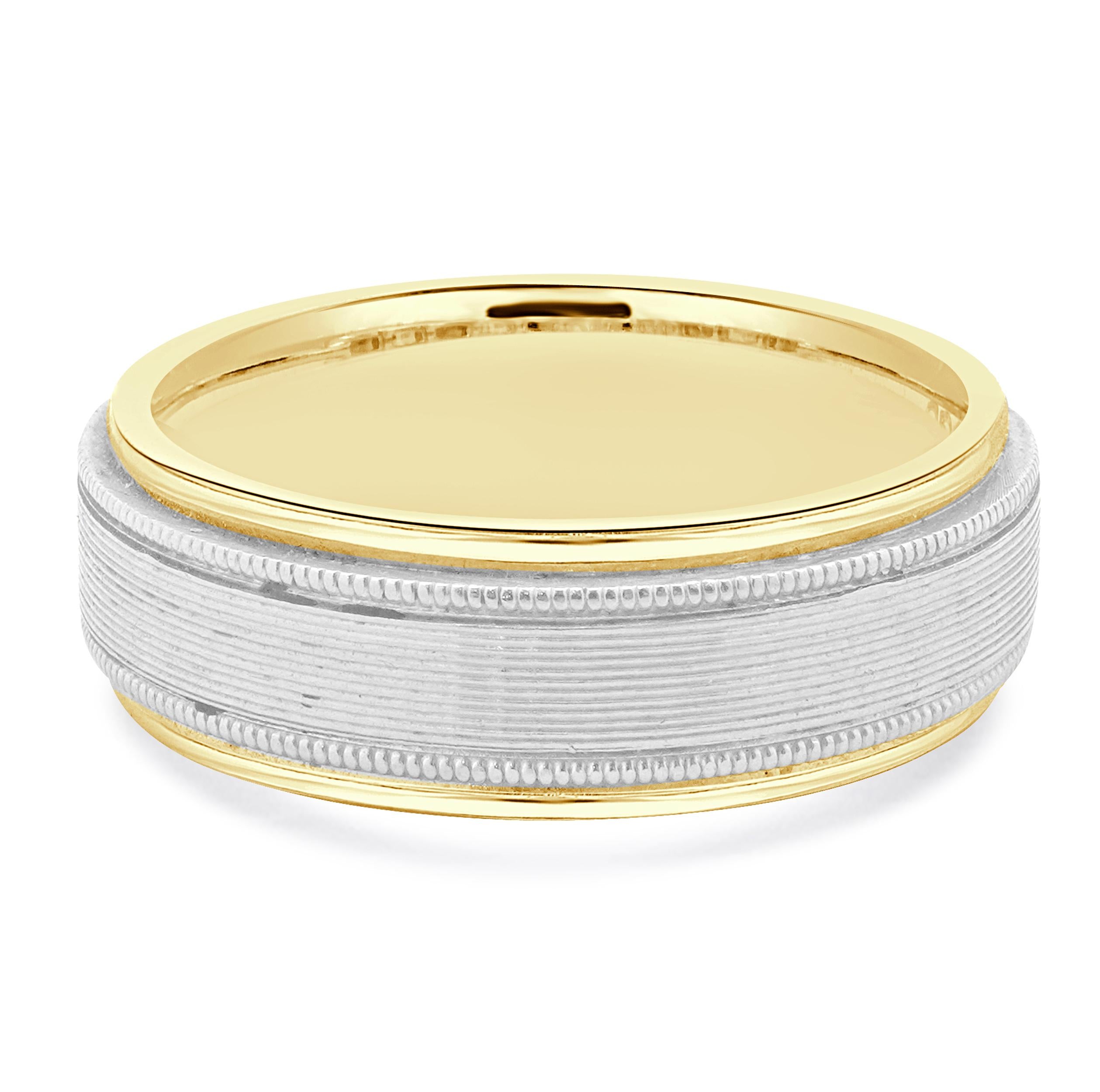 14 Karat Yellow & White Gold 7mm Milgrain Band